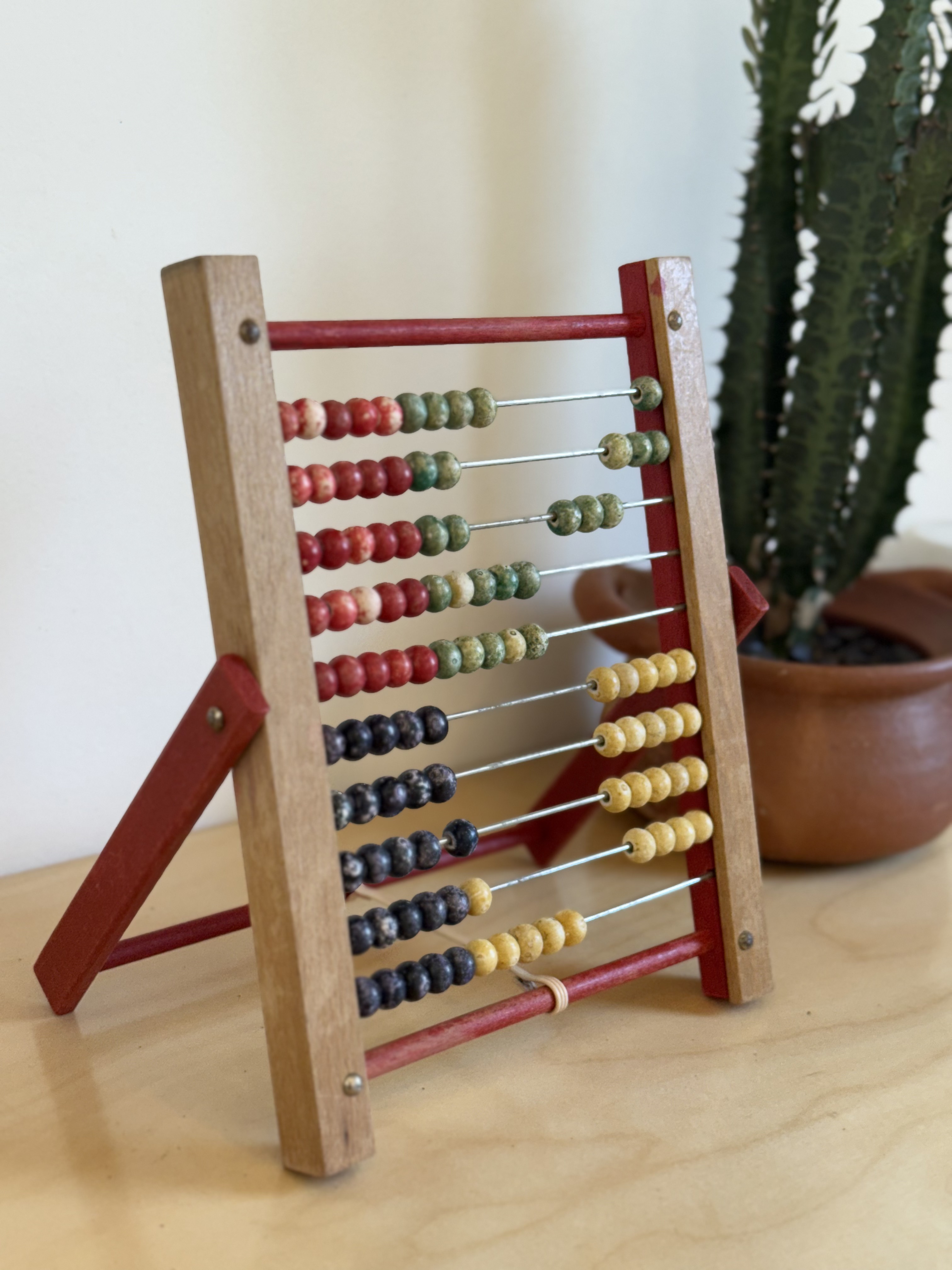 Vintage Danish wooden abacus from the 1950s, size 20×26 cm, with colorful beads. Handmade import from Denmark with a lovely patina and light wear. Pickup in Tel Aviv or shipping available.