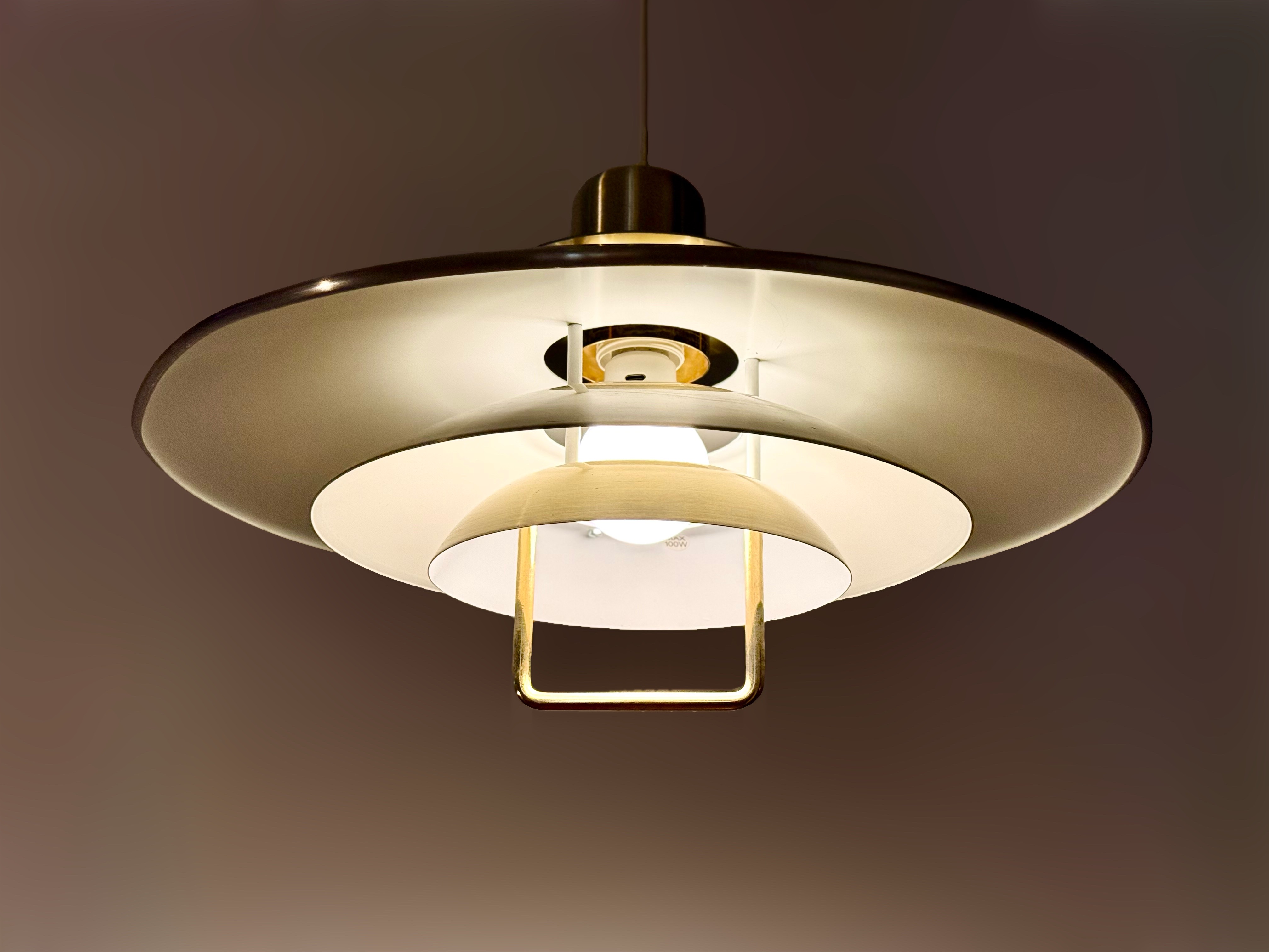 Aluminum Pendant Lamp with Brass Finish - Belid - 1980s