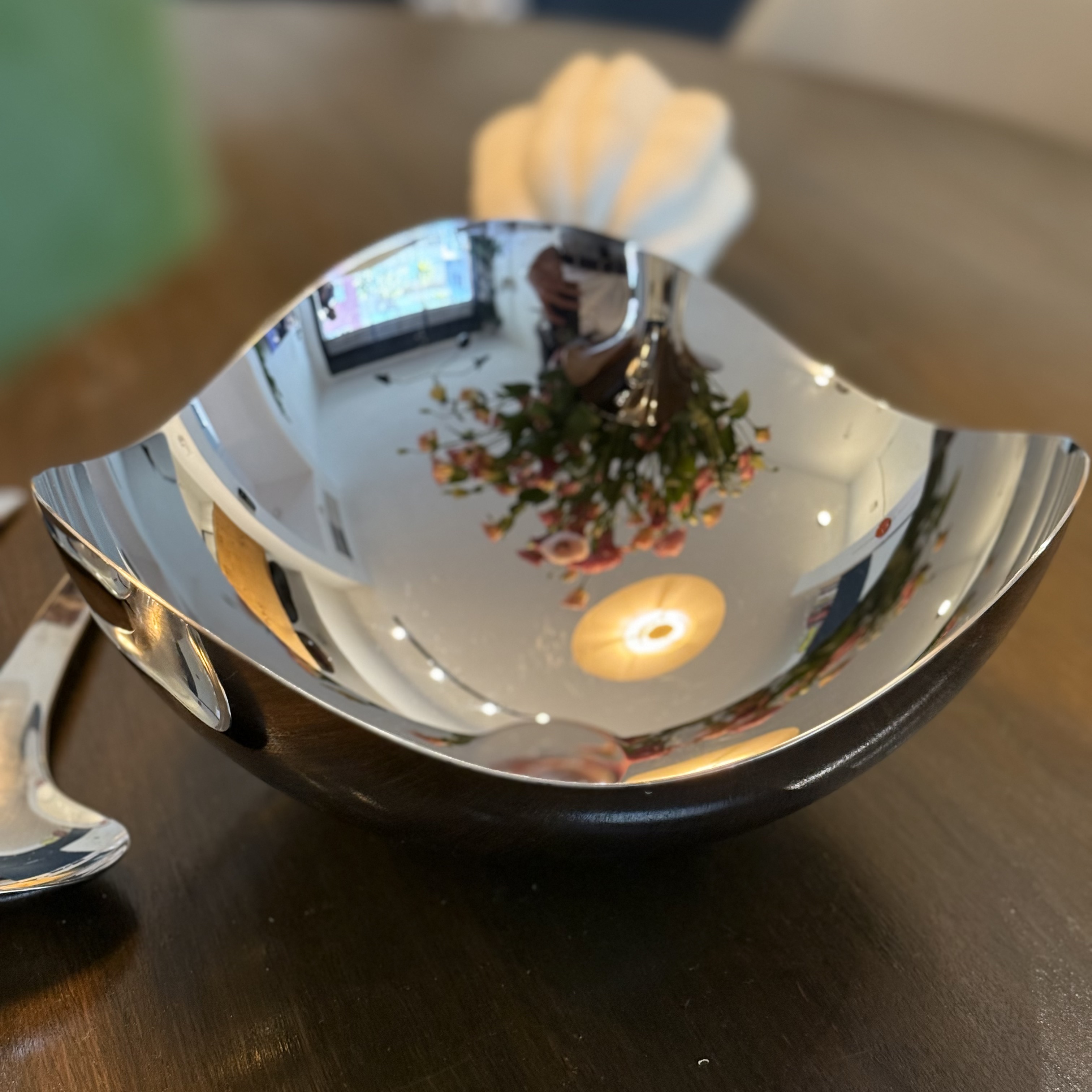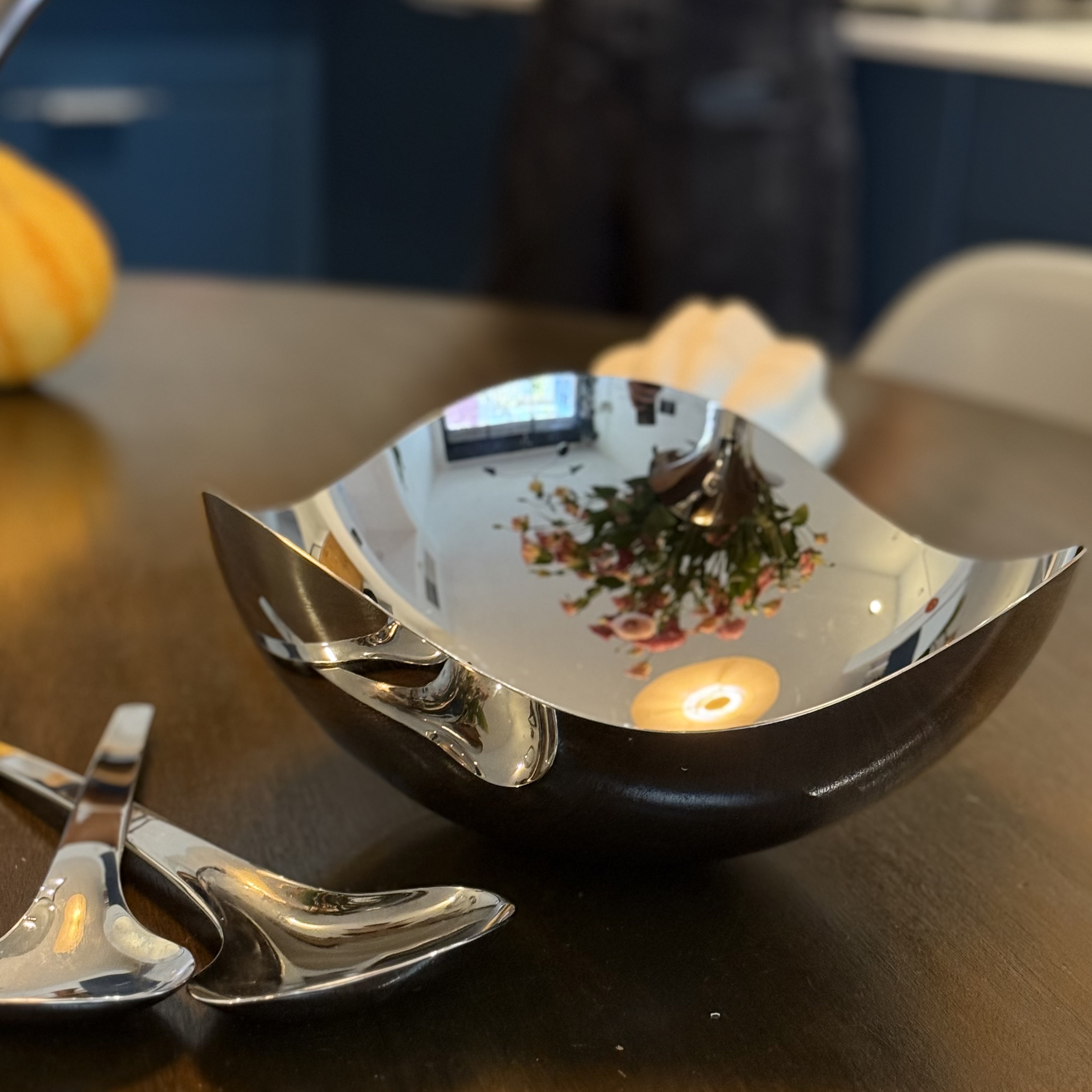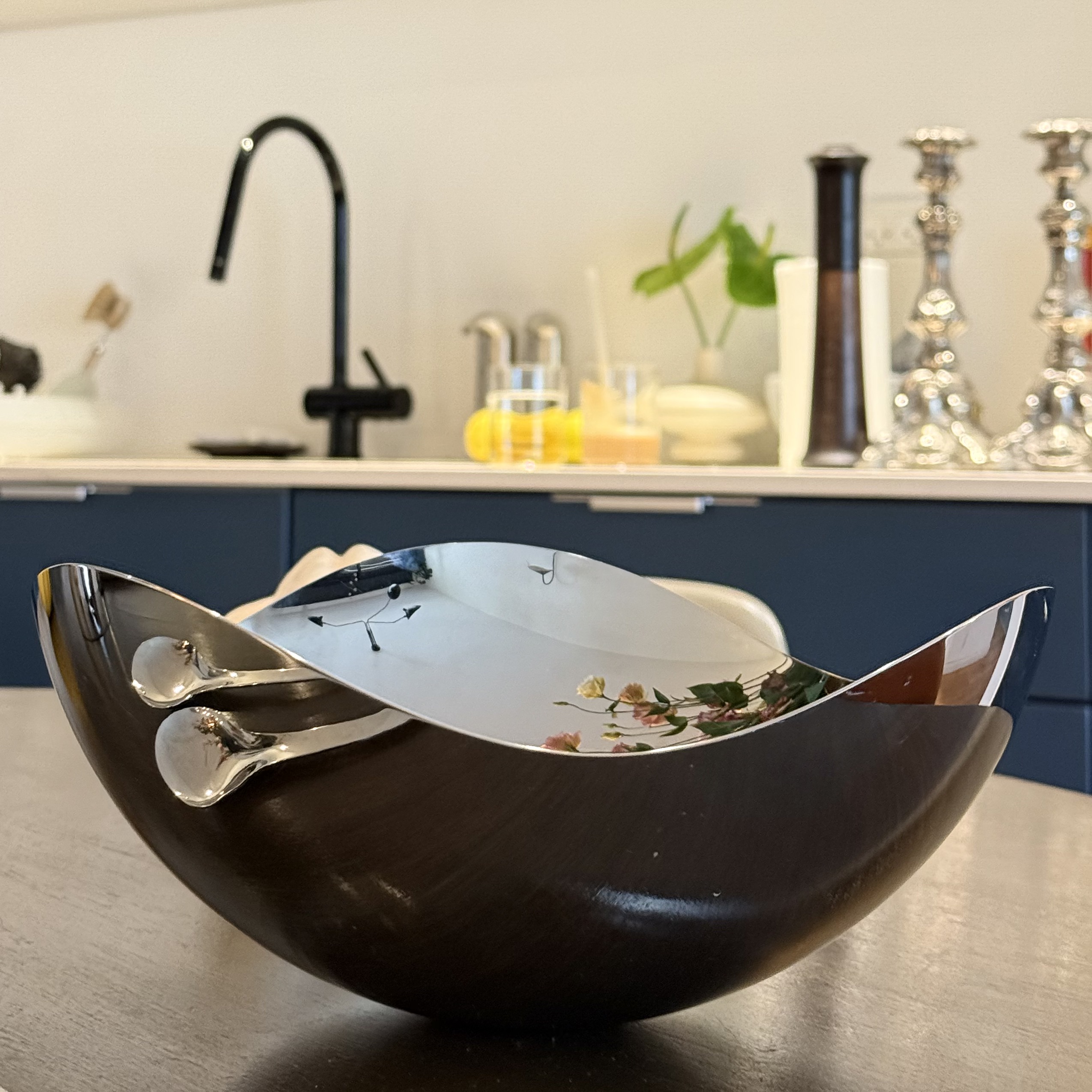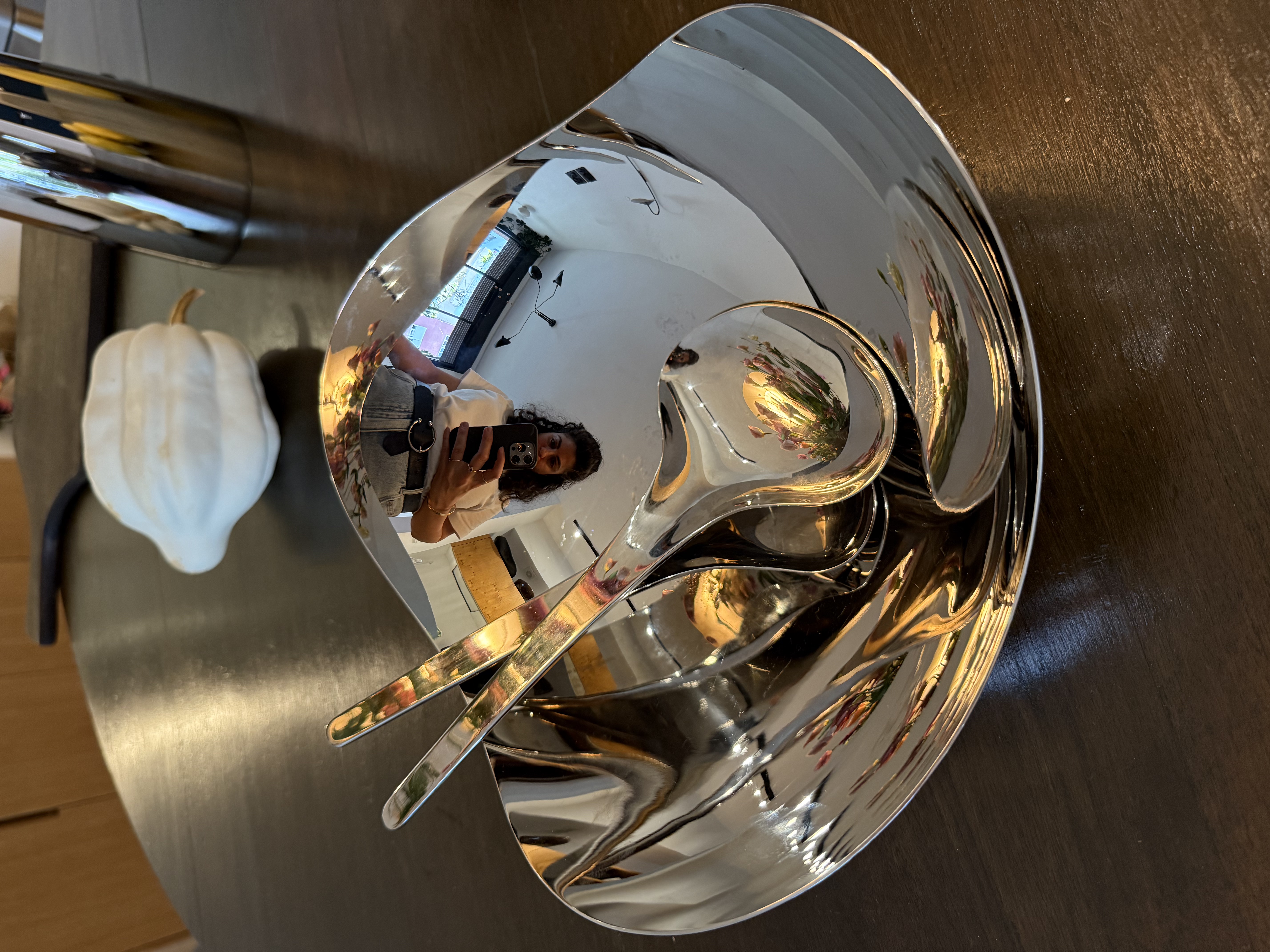 The Georg Jensen Bloom Bowl, designed by Helle, is a stunning piece of contemporary kitchenware that reflects the elegance and innovation of Danish design. Created in a modern era, this bowl exemplifies the minimalist yet sophisticated aesthetic that Georg Jensen is renowned for. The stainless steel material not only gives it a sleek, matte appearance but also ensures durability and timelessness, making it a perfect centerpiece for any dining table. The reflective surface of the bowl subtly captures the surrounding environment, adding an interactive element to its design. This piece is not just a functional kitchen item but also a statement of taste and class, embodying the Scandinavian tradition of combining form and function. Its creation reflects a cultural appreciation for simplicity and quality, hallmarks of modern Danish craftsmanship. The Bloom Bowl's gentle curves and polished finish invite touch and admiration, making it a cherished item in any home.